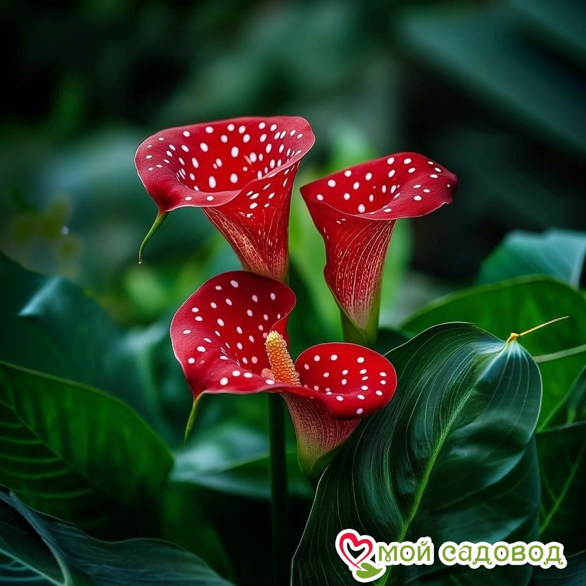 Уход: Каллы нуждаются в регулярном поливе, особенно в период активного роста и цветения. Подкормку следует проводить комплексными удобрениями для цветущих растений каждые 2–3 недели. После цветения полив следует постепенно сокращать, а клубневые каллы можно выкопать и хранить в сухом прохладном месте до следующей весны. Зимой комнатные каллы нуждаются в периоде покоя, поэтому полив следует значительно сократить и перенести растение в более прохладное место. Важно следить за влажностью воздуха, особенно в отапливаемых помещениях, и при необходимости опрыскивать листья водой.